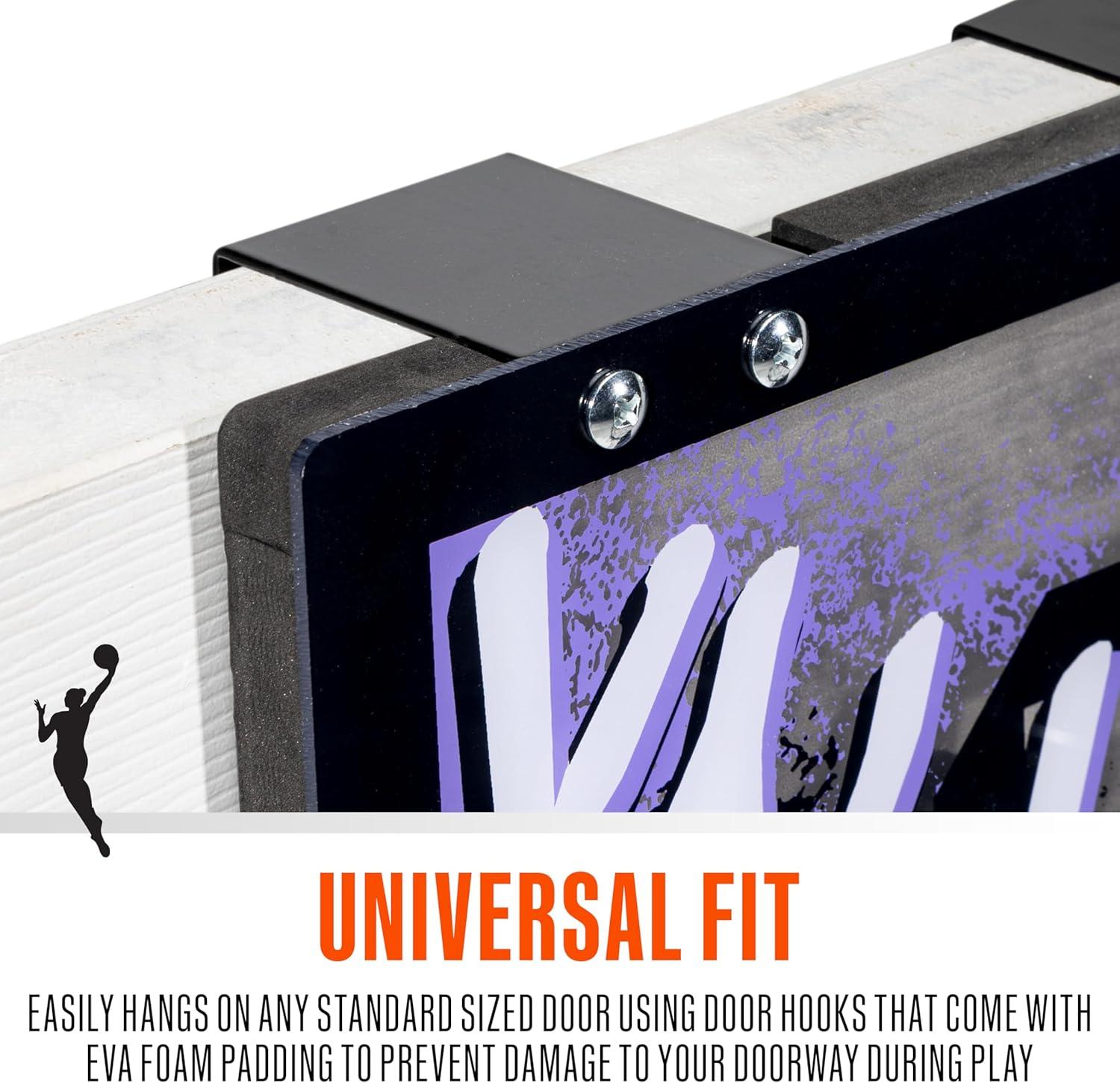 FULL SET INCLUDED: This WNBA set comes complete with (1) over the door hoop, (1) 5″ mini basketball, and (1) air pump so you have everything you need to get the game started!
