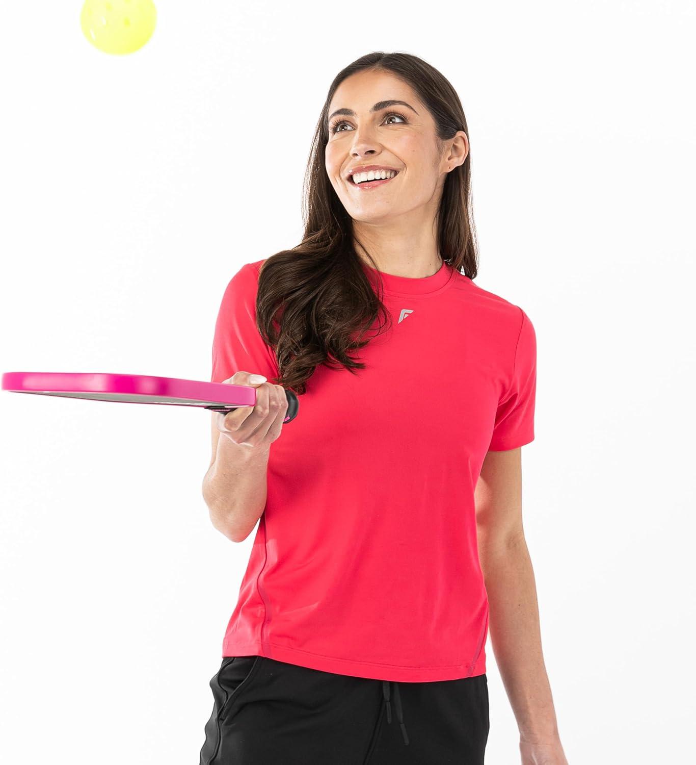 Franklin Sports Women’s Active Performance Pickleball Top – Short Sleeve T-Shirt – Running, Yoga, Gym + Lifestyle Tee(Pink)