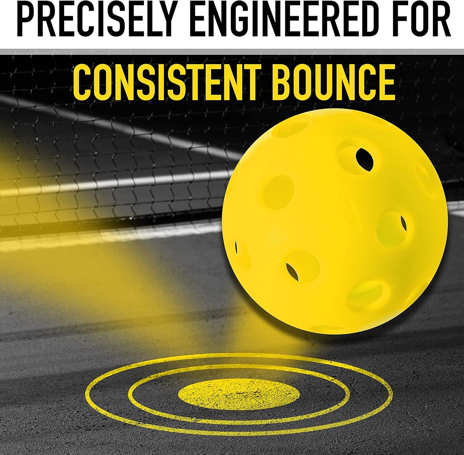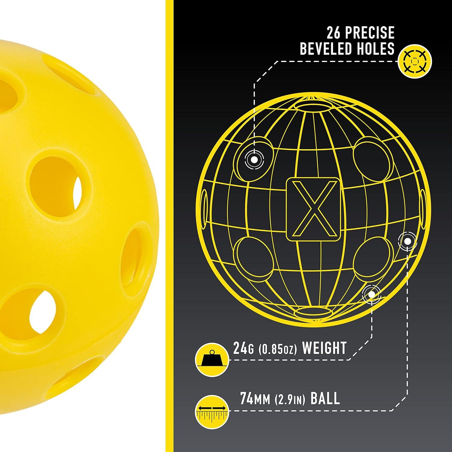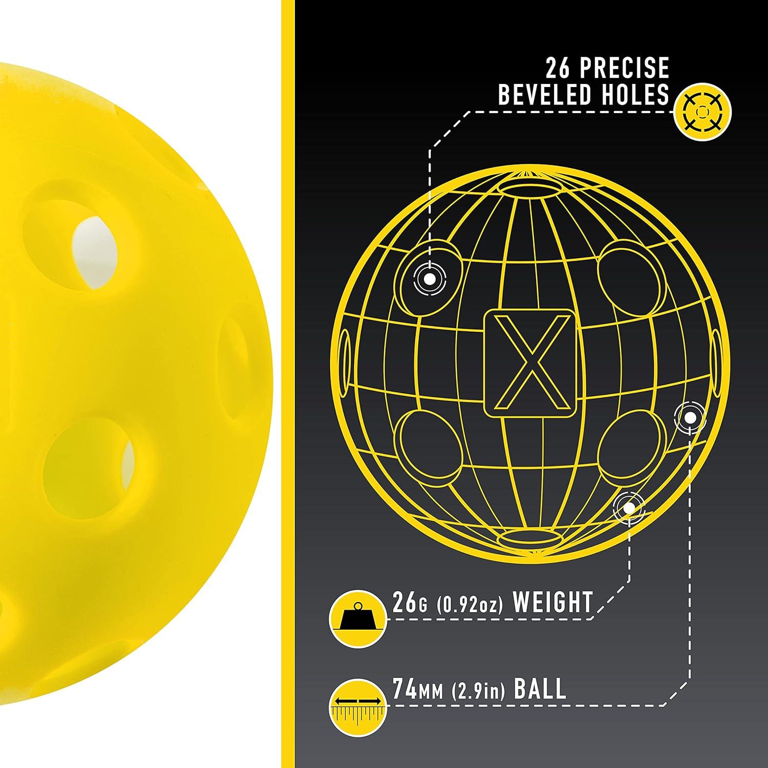 PRECISION DESIGN: X-26 pickleballs are constructed with 26 precisely placed holes for a balanced flight pattern and tight, reliable spin that is consistent from ball to ball