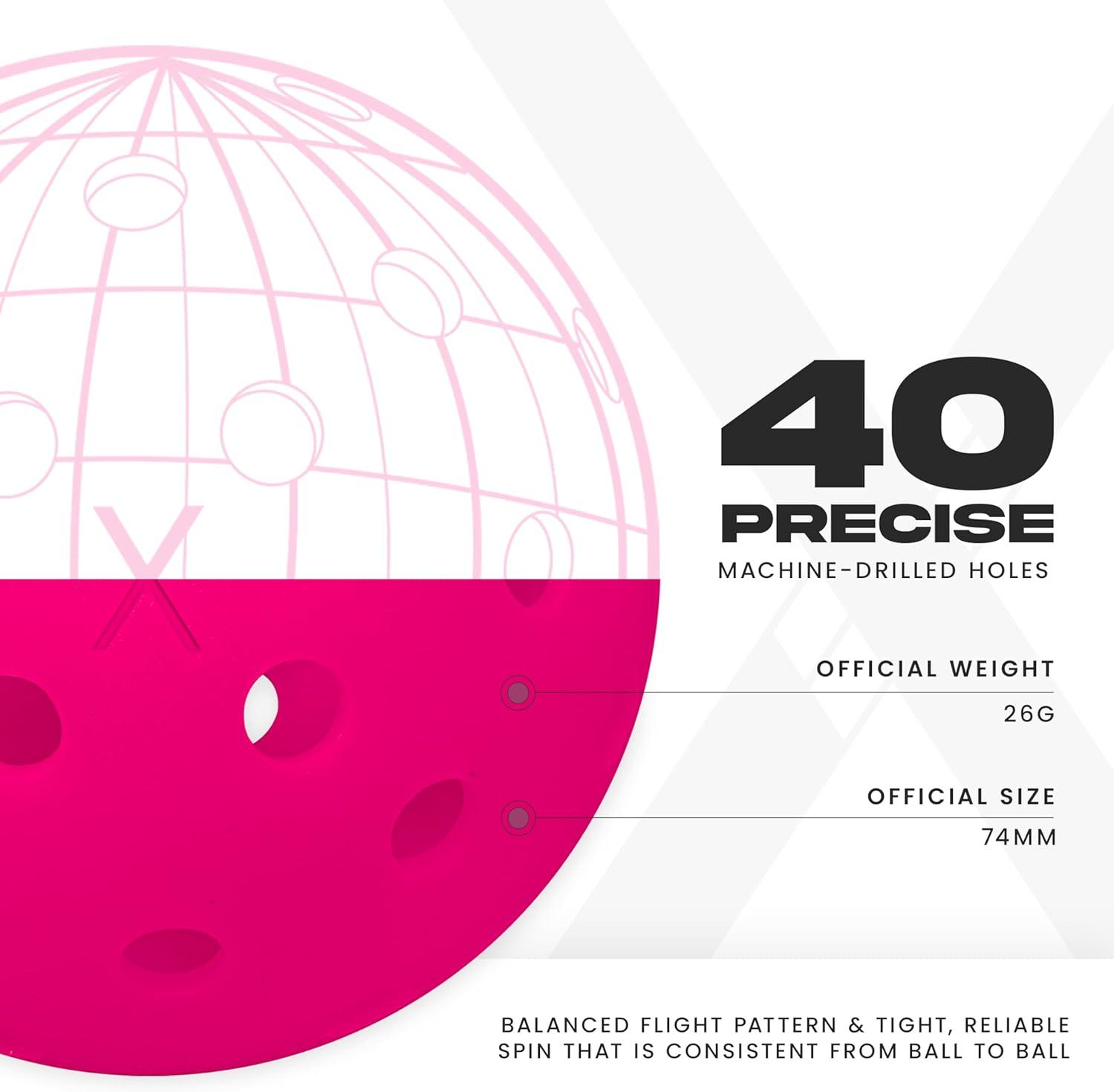 PRECISION DESIGN: X-40 pickleballs are constructed with 40 precise, machine-drilled holes for a balanced flight pattern and tight, reliable spin that is consistent from ball to ball