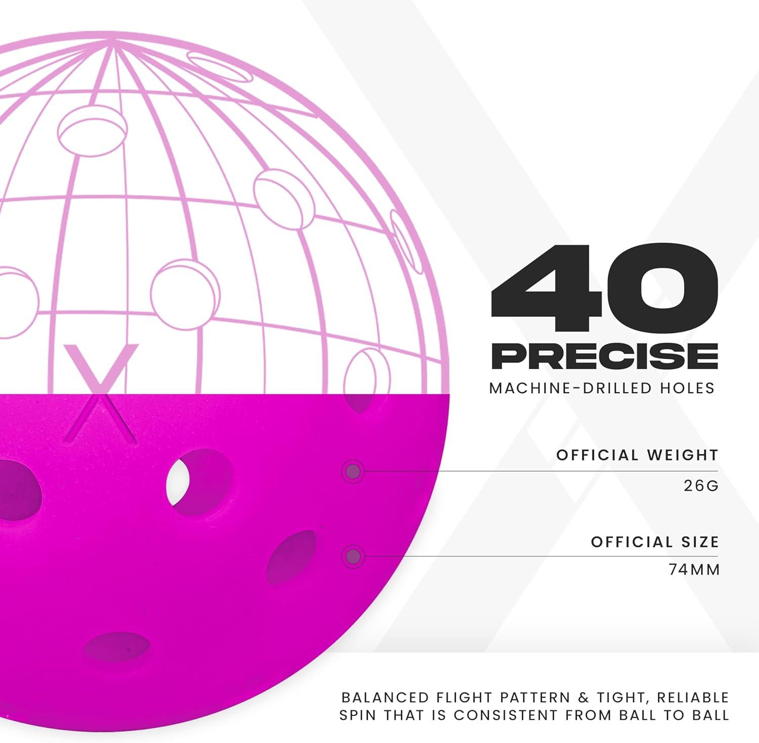 PRECISION DESIGN: X-40 pickleballs are constructed with 40 precise, machine-drilled holes for a balanced flight pattern and tight, reliable spin that is consistent from ball to ball