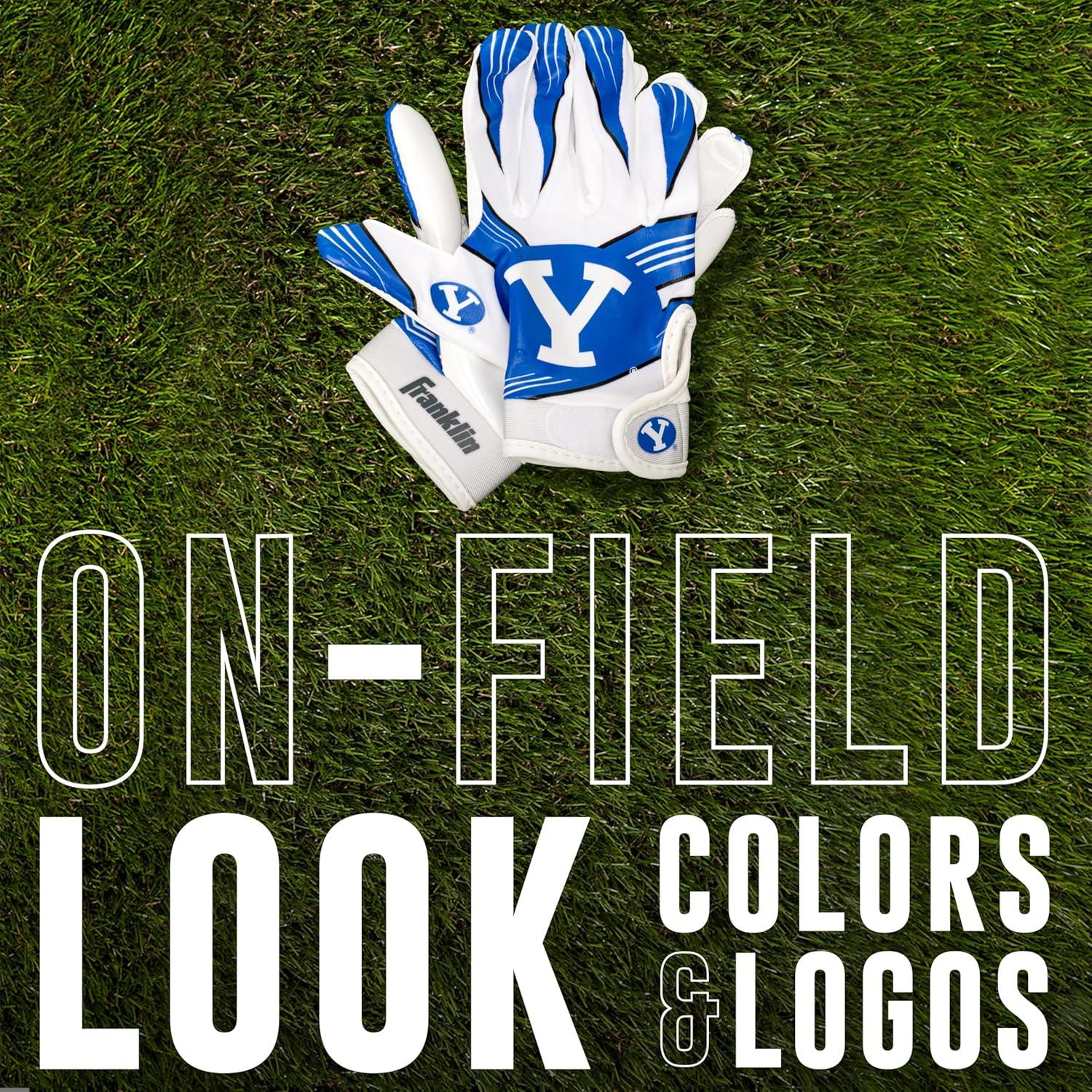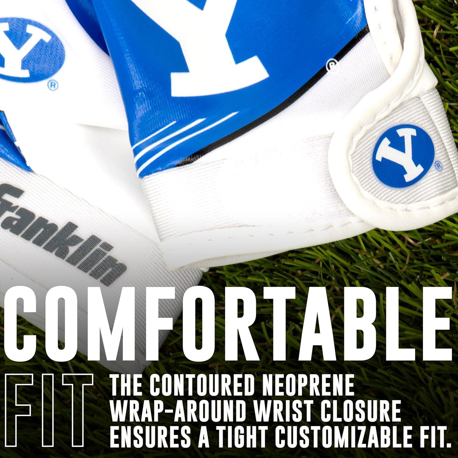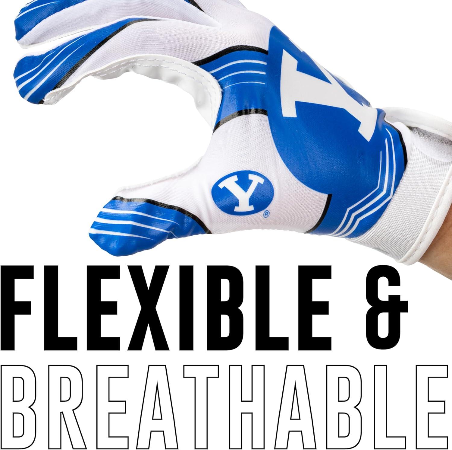 Franklin Sports Youth NCAA Football Receiver Gloves – Receiver Gloves for Kids – NCAA Team Logos and Silicone Palm – Youth Pair – Great for Games & Costumes(BYU Cougars)