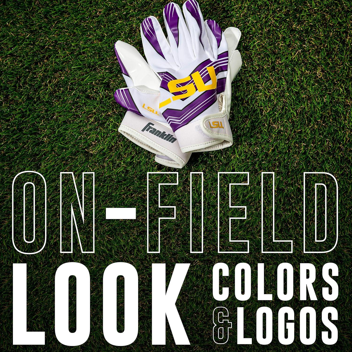 Franklin Sports Youth NCAA Football Receiver Gloves – Receiver Gloves for Kids – NCAA Team Logos and Silicone Palm – Youth Pair – Great for Games & Costumes(LSU Tigers)