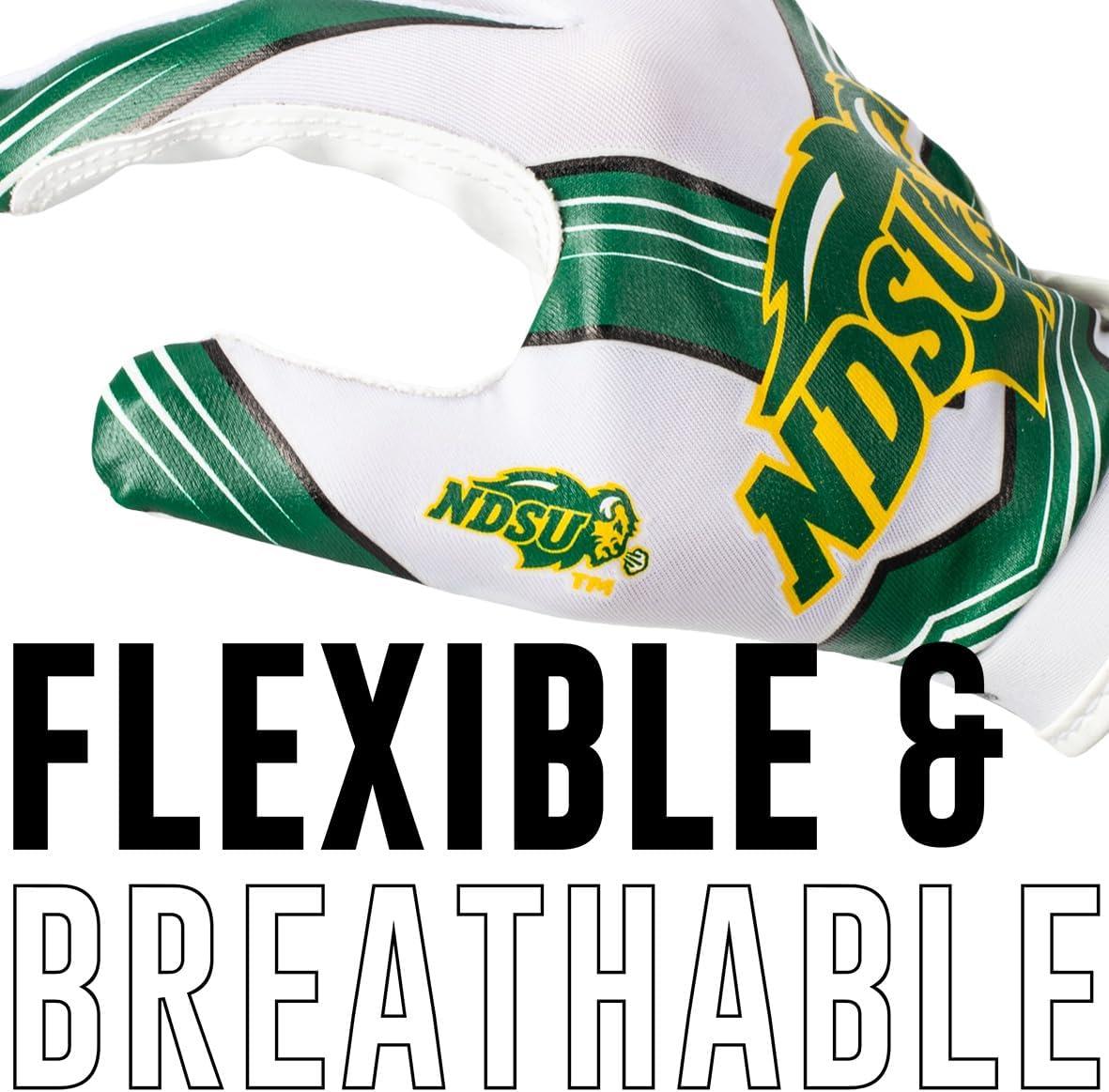 Franklin Sports Youth NCAA Football Receiver Gloves – Receiver Gloves for Kids – NCAA Team Logos and Silicone Palm – Youth Pair – Great for Games & Costumes(North Dakota State Bison)