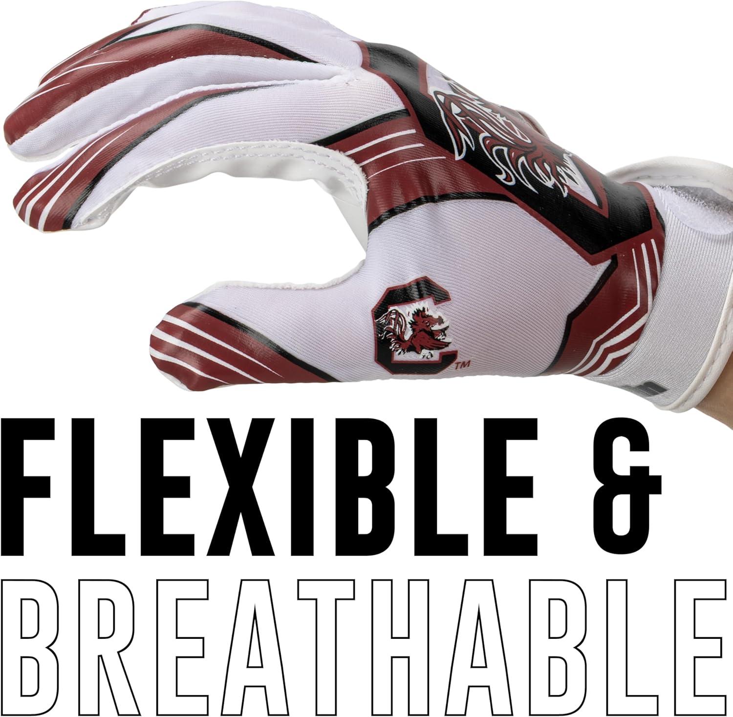 Franklin Sports Youth NCAA Football Receiver Gloves – Receiver Gloves for Kids – NCAA Team Logos and Silicone Palm – Youth Pair – Great for Games & Costumes(South Carolina Gamecocks)