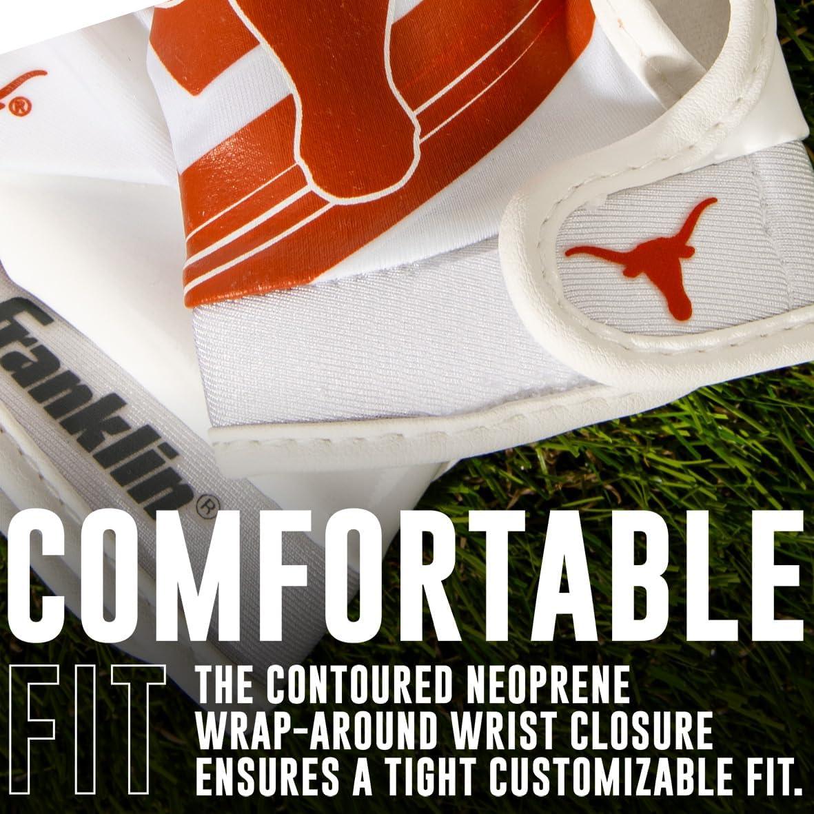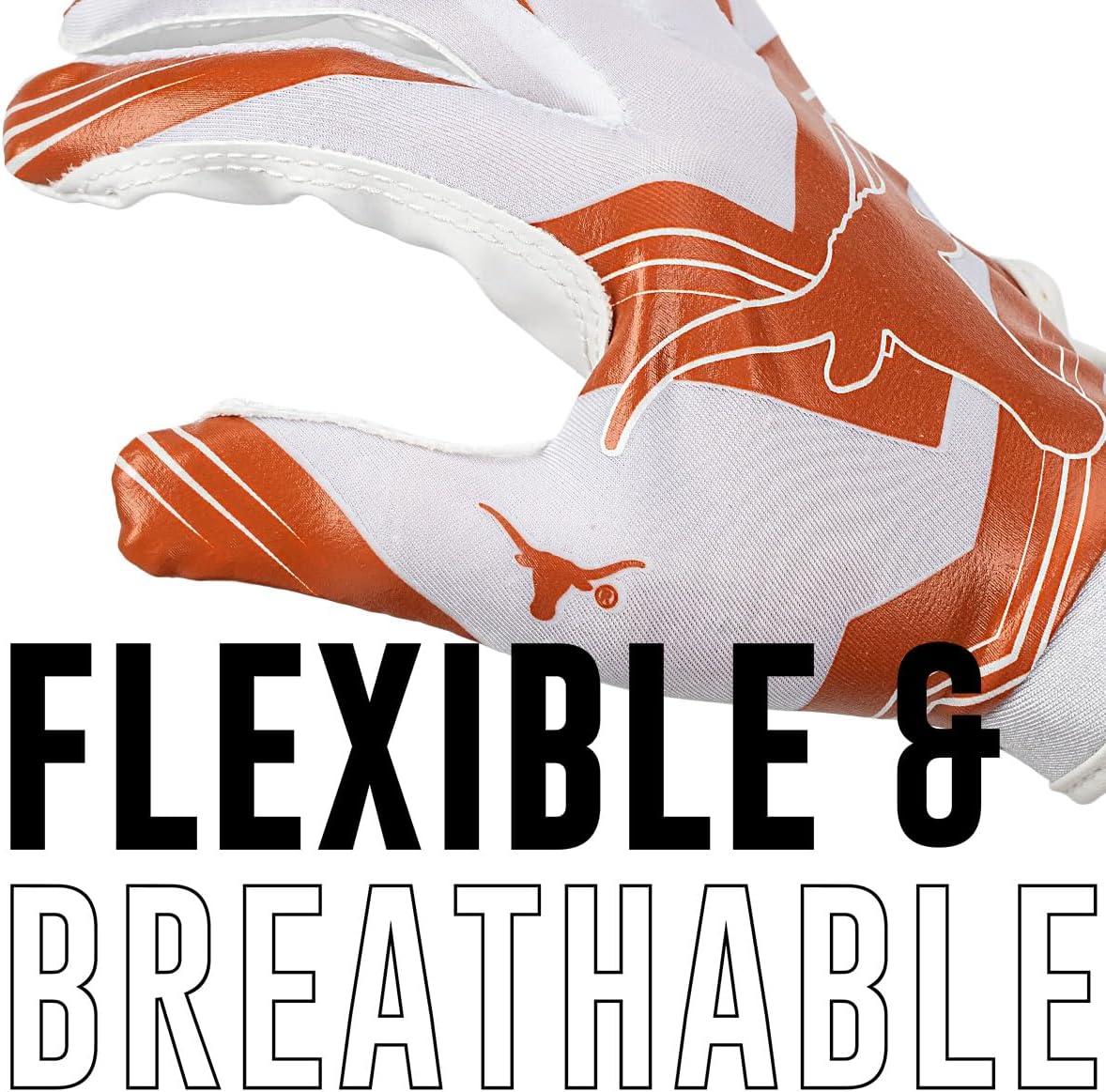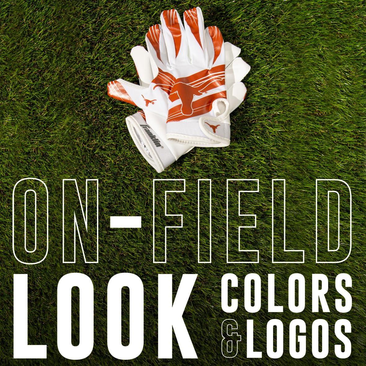 Franklin Sports Youth NCAA Football Receiver Gloves – Receiver Gloves for Kids – NCAA Team Logos and Silicone Palm – Youth Pair – Great for Games & Costumes(Texas Longhorns)