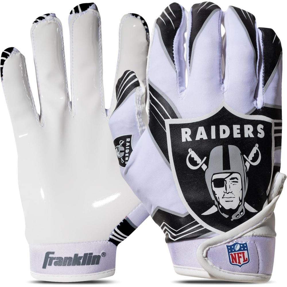 Franklin Sports Youth NFL Football Receiver Gloves – Kids Football Gloves Pair – NFL Team Logos and Silicone Palm(Las Vegas Raiders)