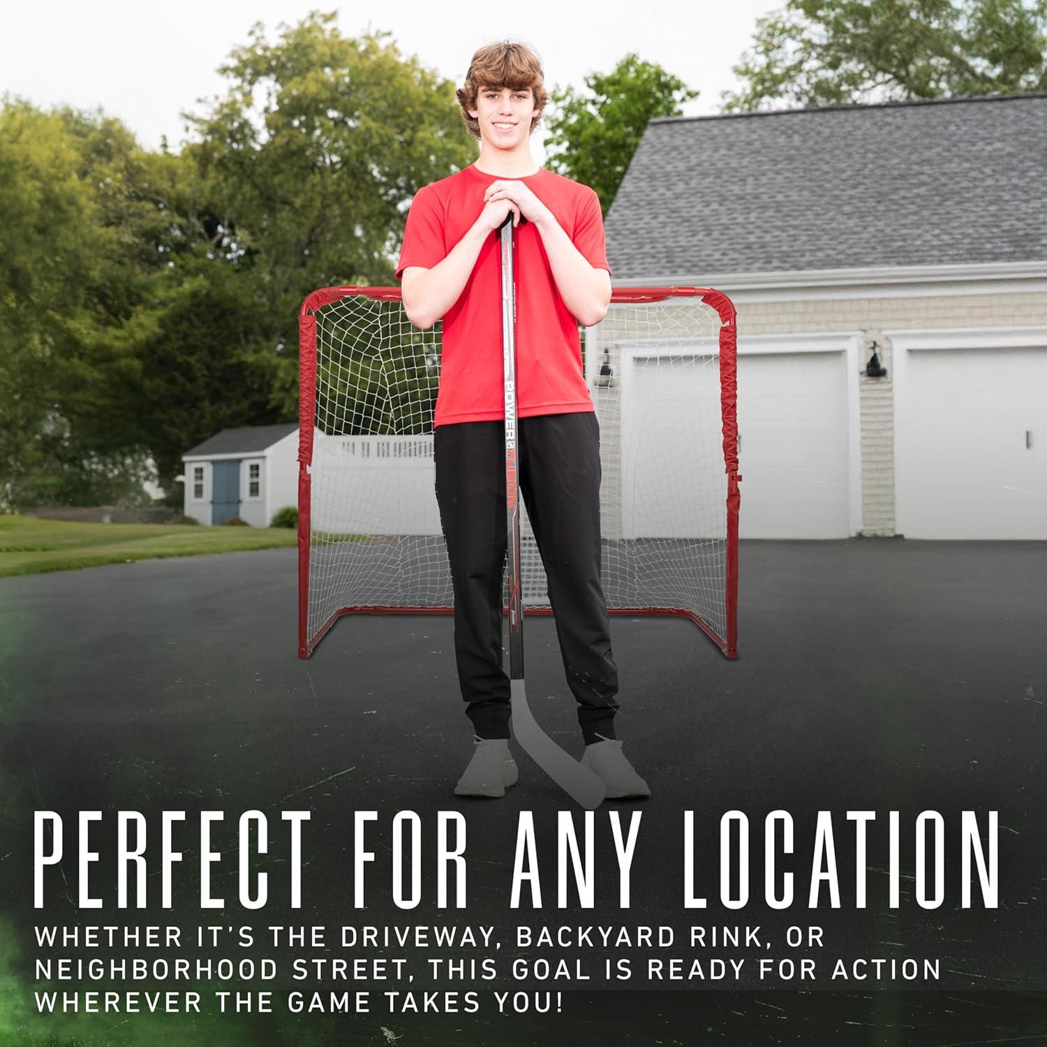 YOUTH SIZED: At 54″ x 44″ this goal is the perfect size for youth hockey players to play and hone their skills!