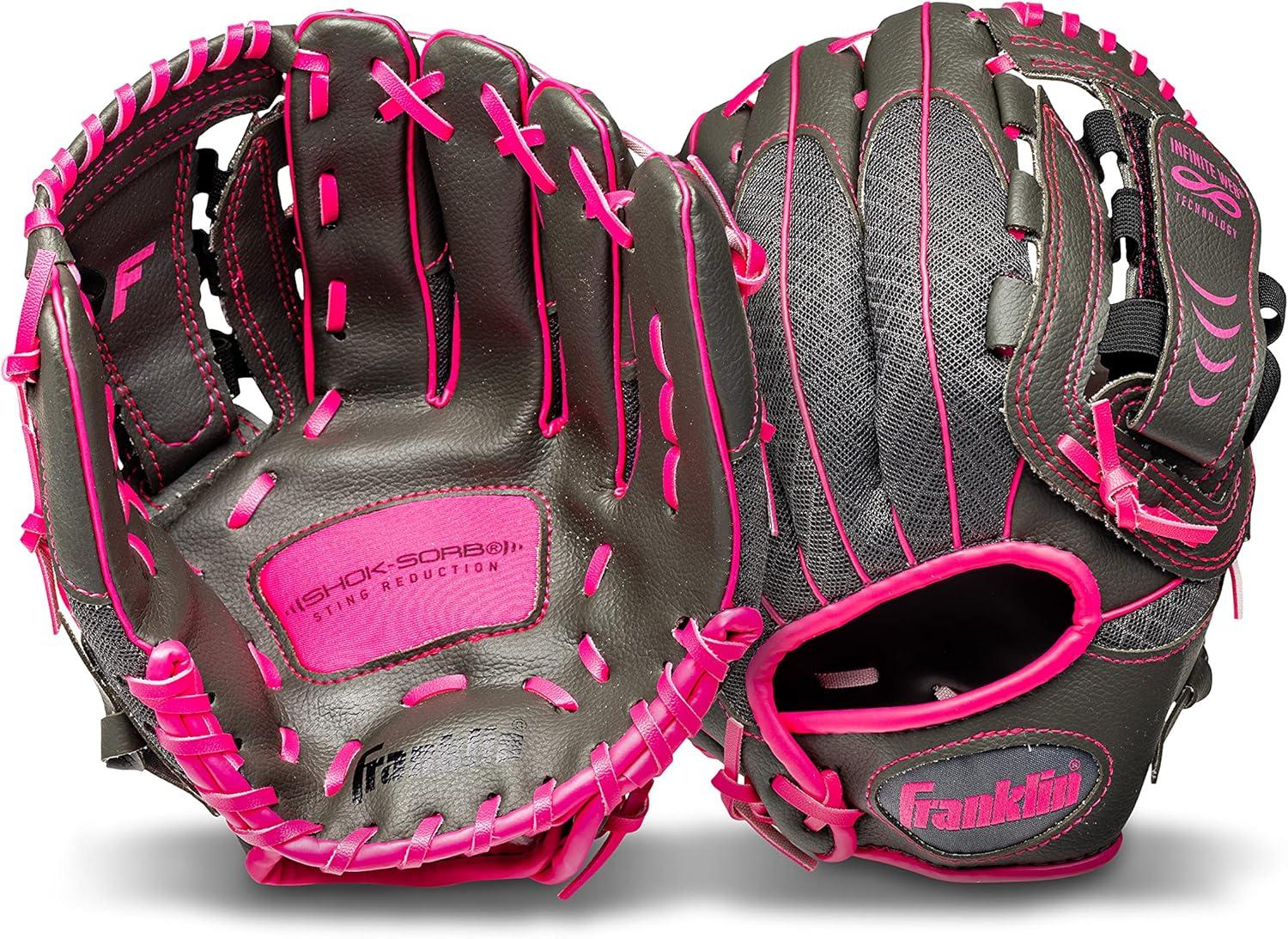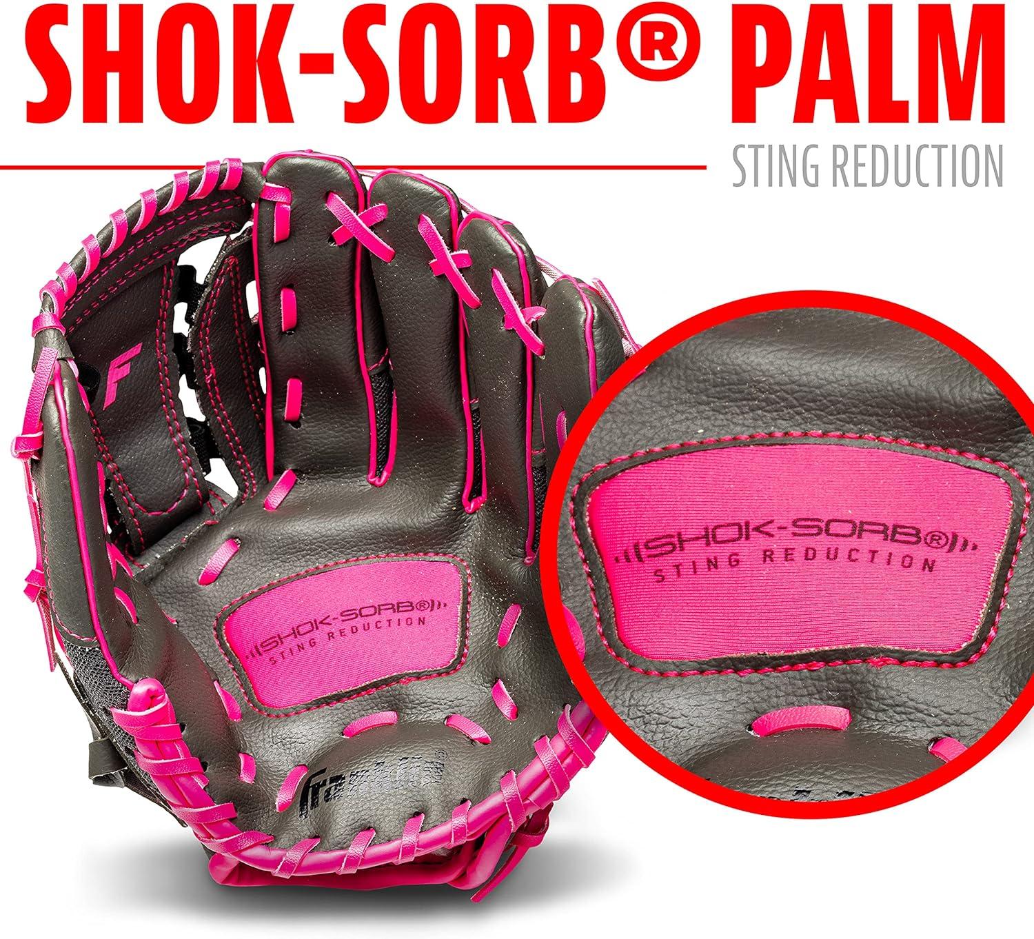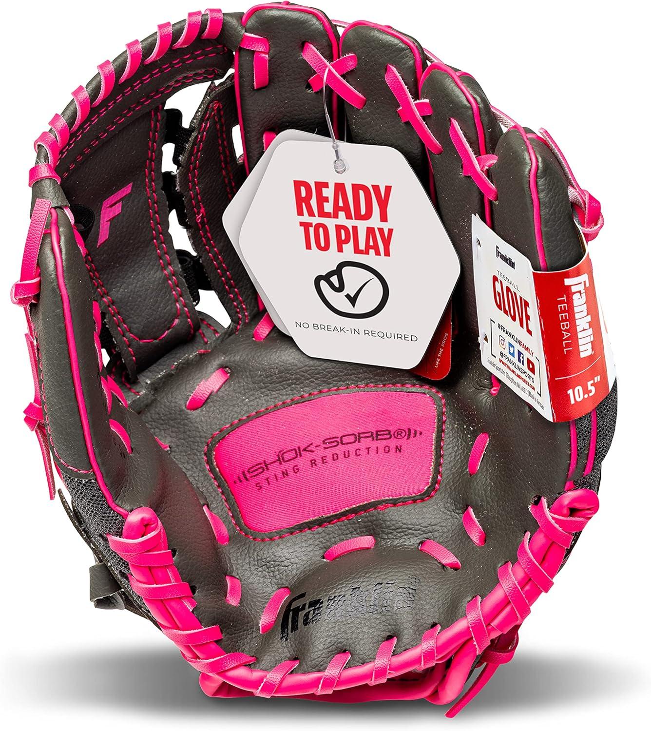 Franklin Sports Youth Teeball Gloves – Shok Sorb Kids Baseball + Teeball Mitt – Boys + Girls Fielder Gloves – 10.5″ Inch(Graphite/Pink)