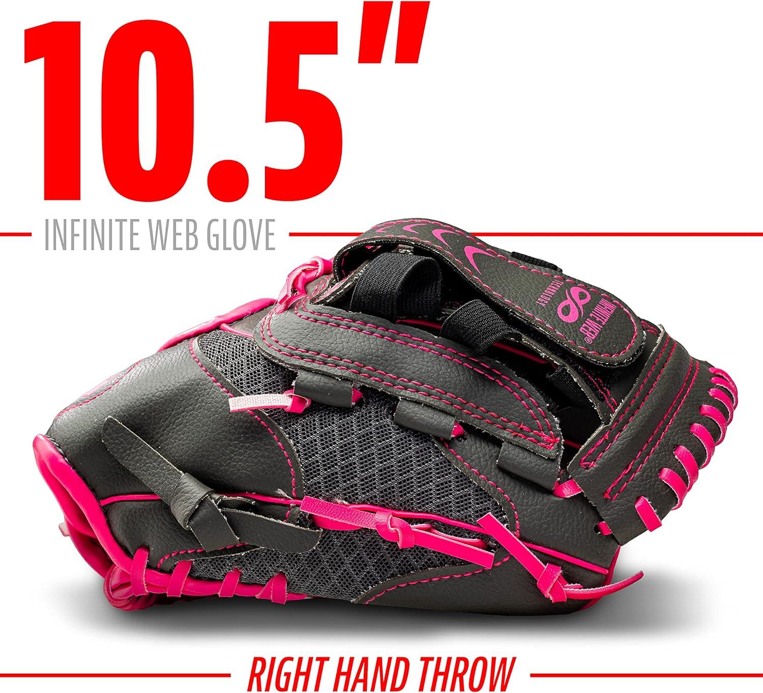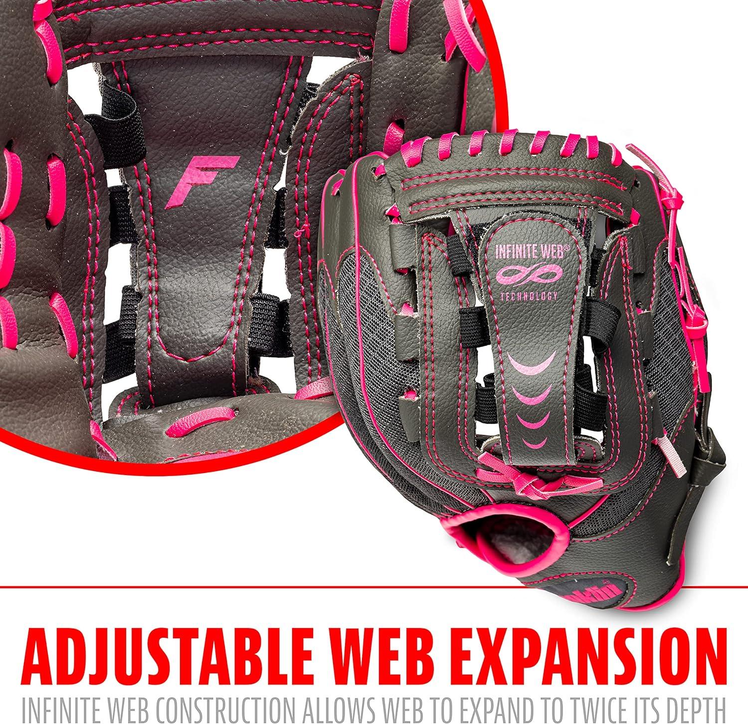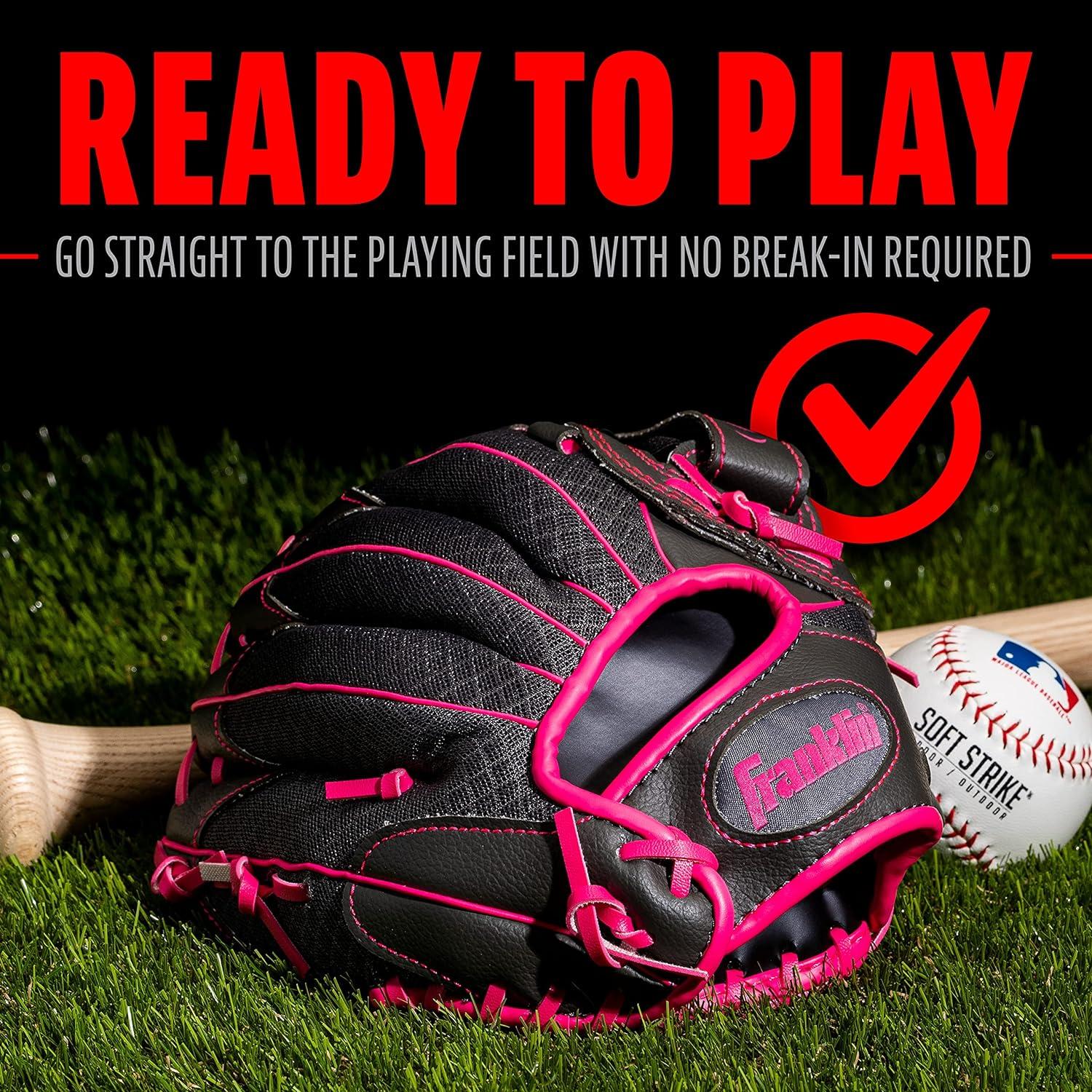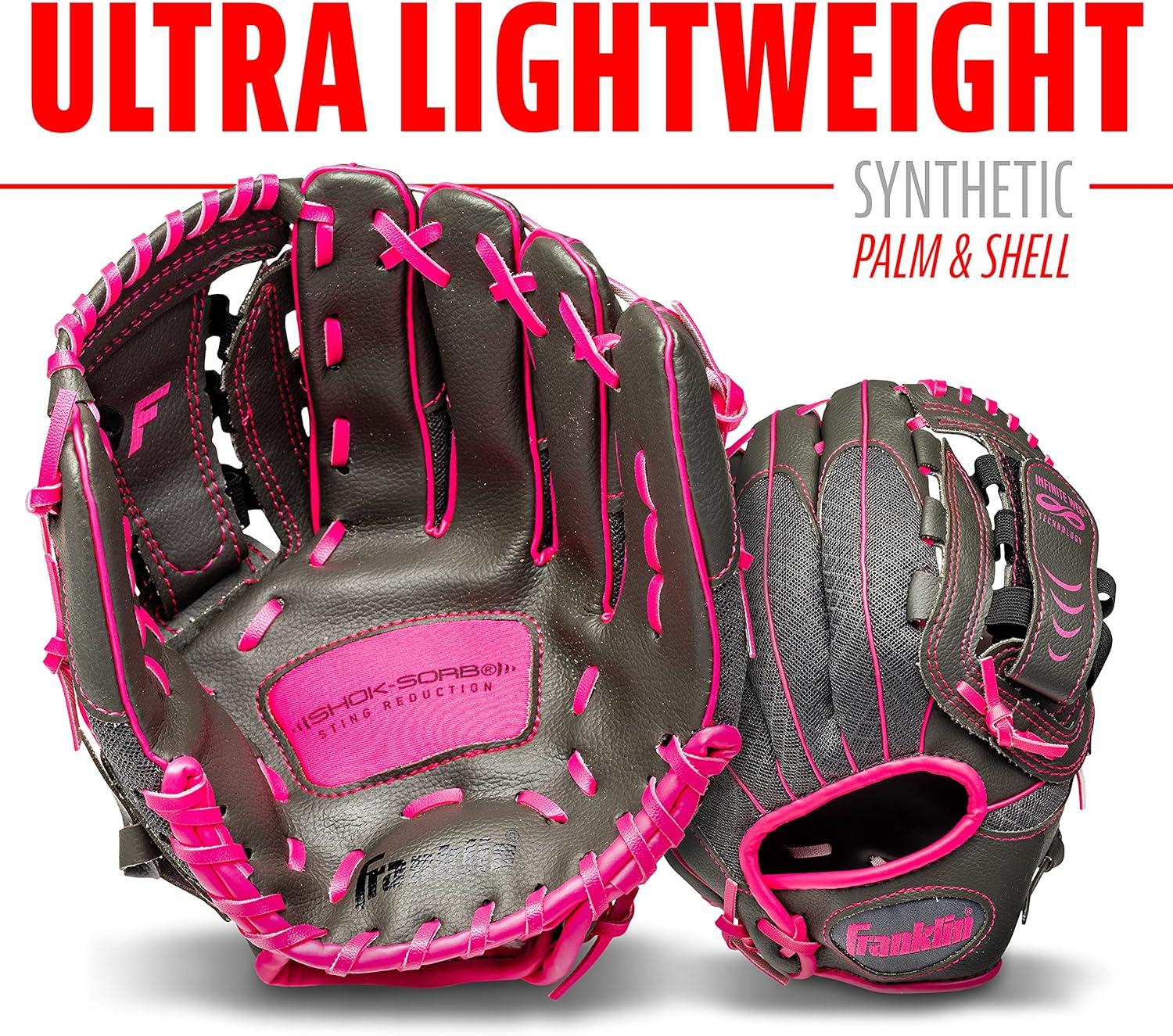 Franklin Sports Youth Teeball Gloves – Shok Sorb Kids Baseball + Teeball Mitt – Boys + Girls Fielder Gloves – 10.5″ Inch(Graphite/Pink)
