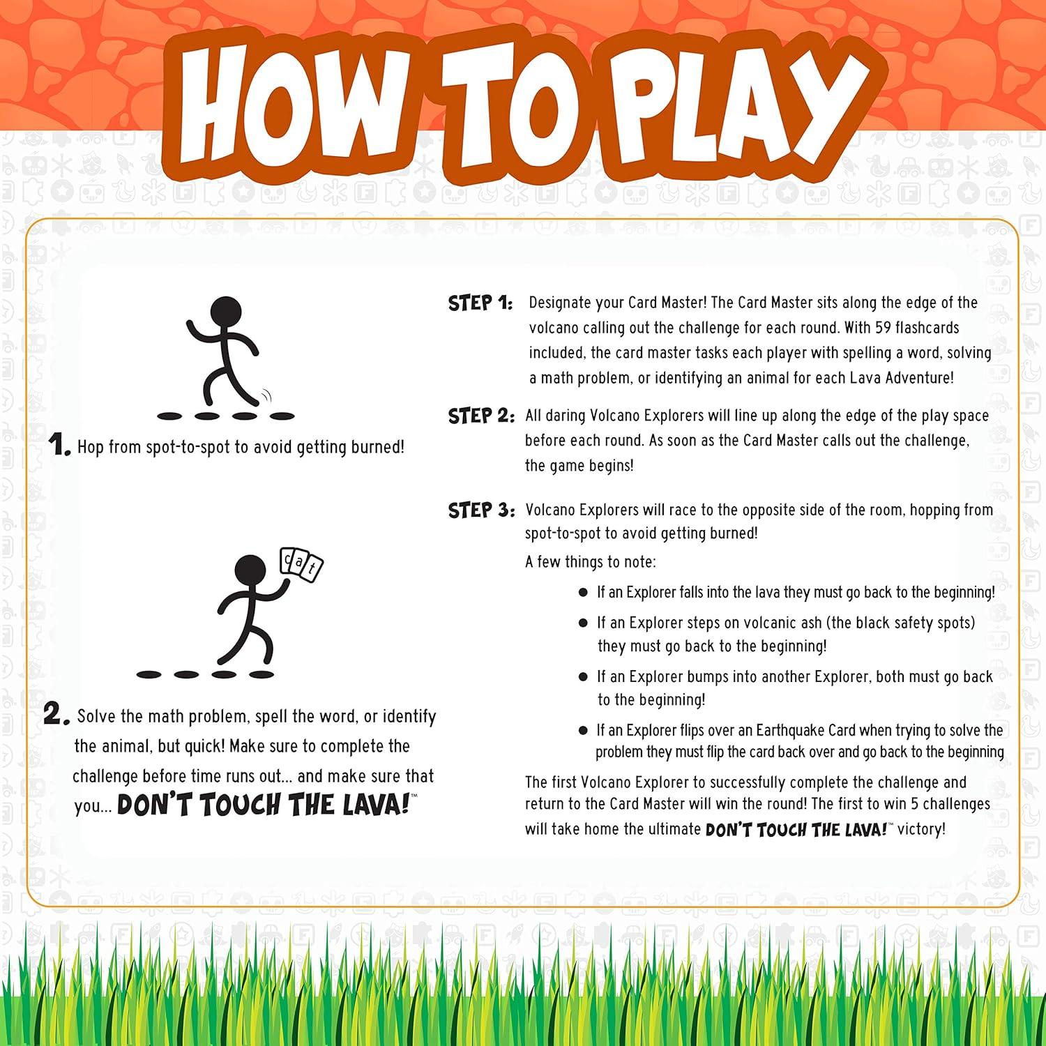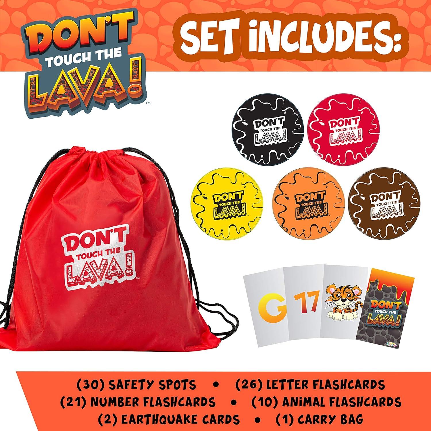 Franklin's Don’t Touch the Lava! is the perfect adventure game for educational fun! Perfect for kids 5+, this game is loads of fun with an educational twist! Race from one side of the room to the other by hopping on the Safety Spots and finding the answer with the LAVA ADVENTURE flashcards! Solve the math problem, spell the word or identify the animal the fastest to WIN! But remember… DON’T TOUCH THE LAVA! Start the game by designating a Card Master who will sit along the edge of the playspace to call out challenges. The Card Master will choose a task based on the 59 flashcards included. The Volcano Explorers start by lining up along the edge of the playspace and race to the opposite side of the room, hopping from spot-to-spot to avoid getting burned! At the edge of the playspace the Lava Adventure flashcards are laid out face down, where Explorers will flip & search to find the answers! The first VOLCANO EXPLORER to complete the challenge and return to the Card Master WINS the round! Don’t Touch the Lava! includes (30) Safety Spots, (26) Letter Flashcards, (21) Number Cards and (10) Animal Cards, as well as (2) Earthquake Cards that will send Explorers back to the beginning. This is the perfect game to get kids up and playing as Volcano Explorers while sharpening their skills in math, spelling and animals!