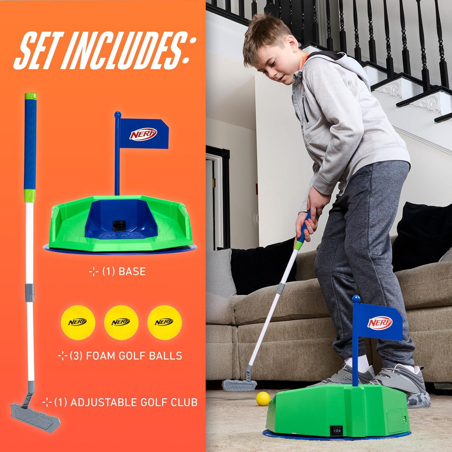 INCLUDES: This set includes the base, adjustable putter and [3] foam golf balls