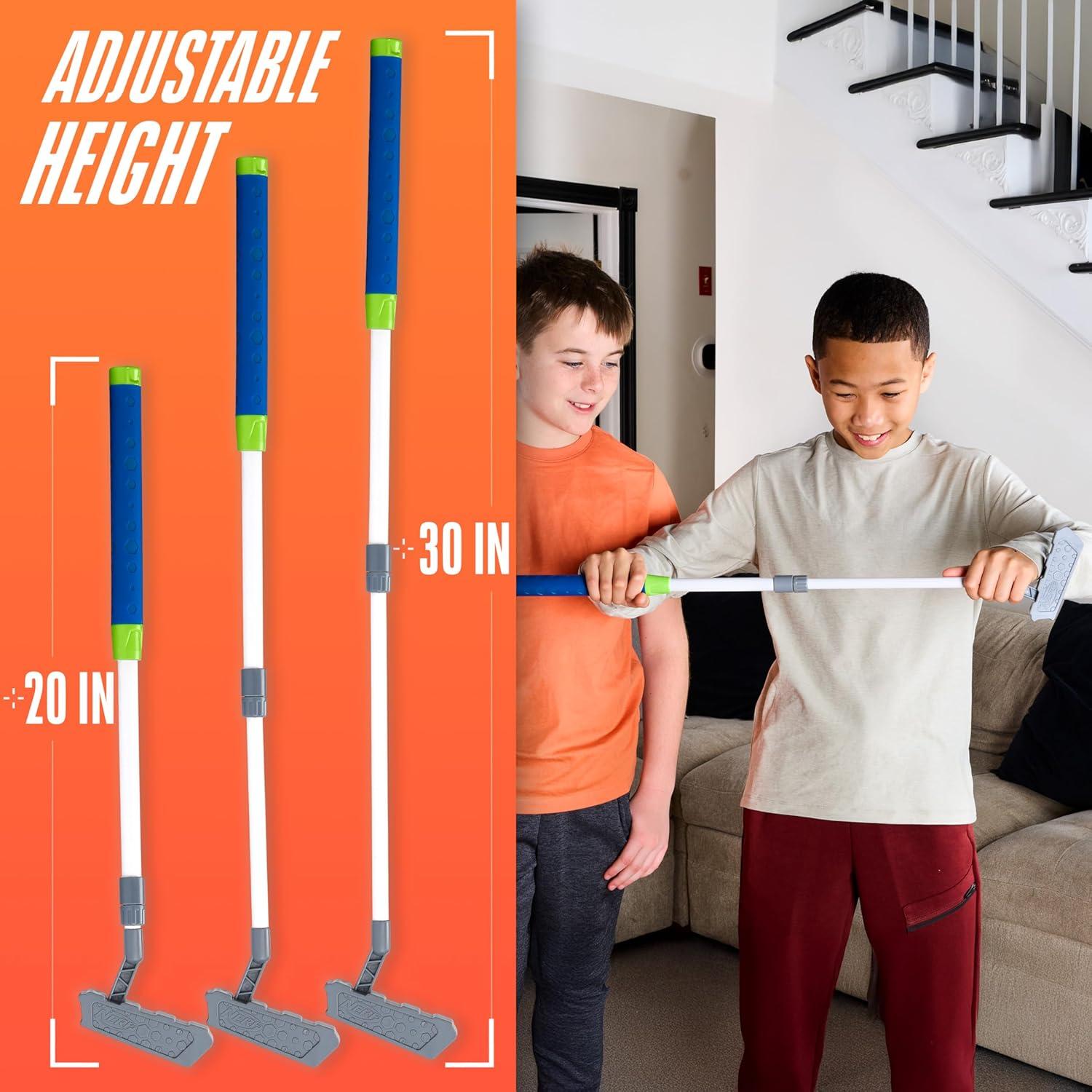 The Nerf Pivot Putt is the fun way to practice your putting skills. This set comes complete with an adjustable putter, auto putt back base and [3] foam golf balls. The base features 3 modes you can adjust to play based on your skill level. Putt into the cup and golf ball will automatically fires back. Miss the cup and the ball will loop around the U-turn and back to you. Set to slow spin mode for an added challenge. For advance players set to speed spin mode for the ultimate challenge. The adjustable length putter extends from 20 – 30″ to fit golfers of all ages and sizes. This set has everything you need for a day of golf fun!