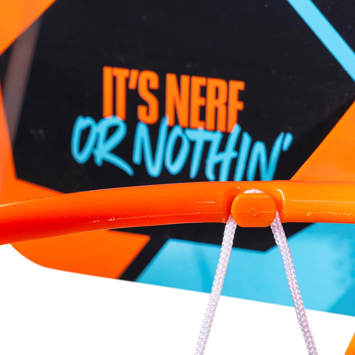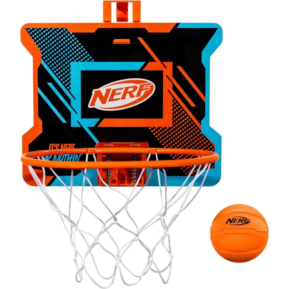 Bring all the fun of basketball indoors with the NERFOOP Slam Mini Over the Door Basketball Hoop Set! This all-in-one indoor mini basketball hoop set has everything kids need to get the game started right in their very own bedroom. This toy basketball set comes with (1) over the door kids basketball hoop and (1) mini NERF foam basketball so kids can play right out of the box. Simply hang the mini hoop over any standardized door and you're ready to play in seconds. This classic hoop has been upgraded with a spring loaded rim and plastic backboard for a more premium feel. Plus the soft foam 3.5″ inch mini basketball is fun indoors so kids can play worry free. So if your kid is looking to bringing some basketball excitement to their room, grab them the NERFOOP Slam Mini Over the Door Basketball Hoop Set and start the game today!